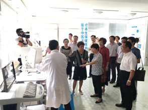 安徽省政協副主任肖超英到我公司考察工作,圖為參觀中醫綜合診斷設備